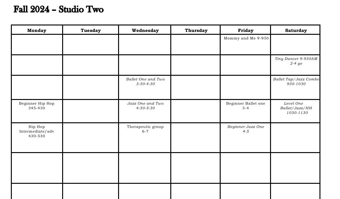 Offering adult classes in ballet, jazz, tap, and hip hop. Made for beginner through intermediate!